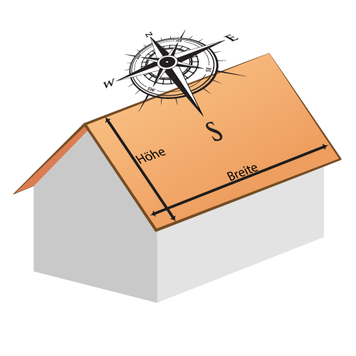 Die Ausrichtung des Daches zur Sonne ist ein nicht zu verachtender Faktor. Die Anzahl der Module richtet sich nach der Ausrichtung des Daches.